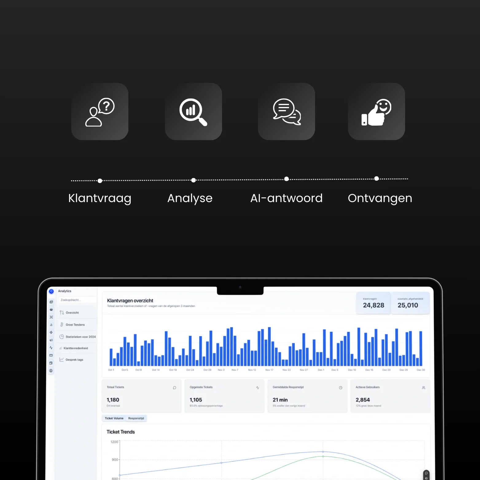 Beheer je volledige klantenservice vanuit één overzichtelijk dashboard.